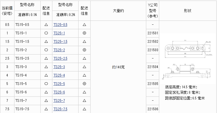 【壓降:50mV(TS25/TS15系列)】TS25和TS15外形相同。