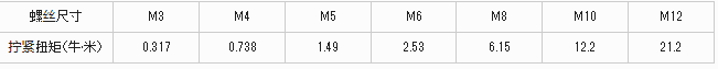 固定黃銅螺釘(螺栓和螺母)的標準擰緊扭矩(參考值)